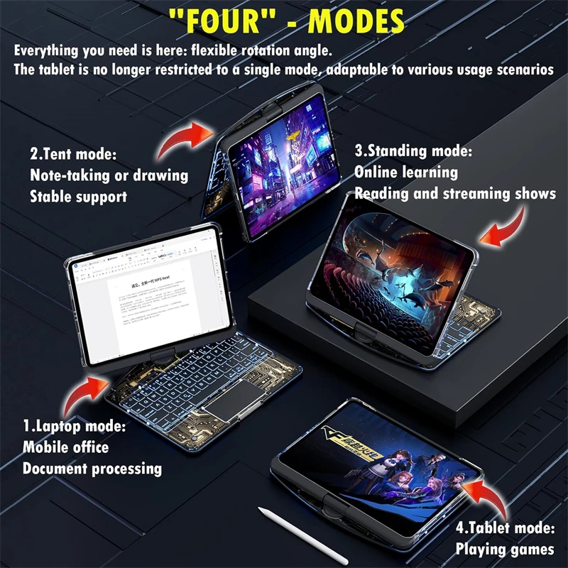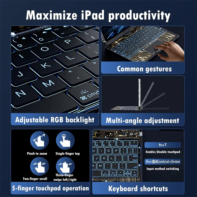 • SIGOR 360° Rotating Wireless Bluetooth Multi-Touch IPAD Pro Mini Air Protective Case with Keyboard