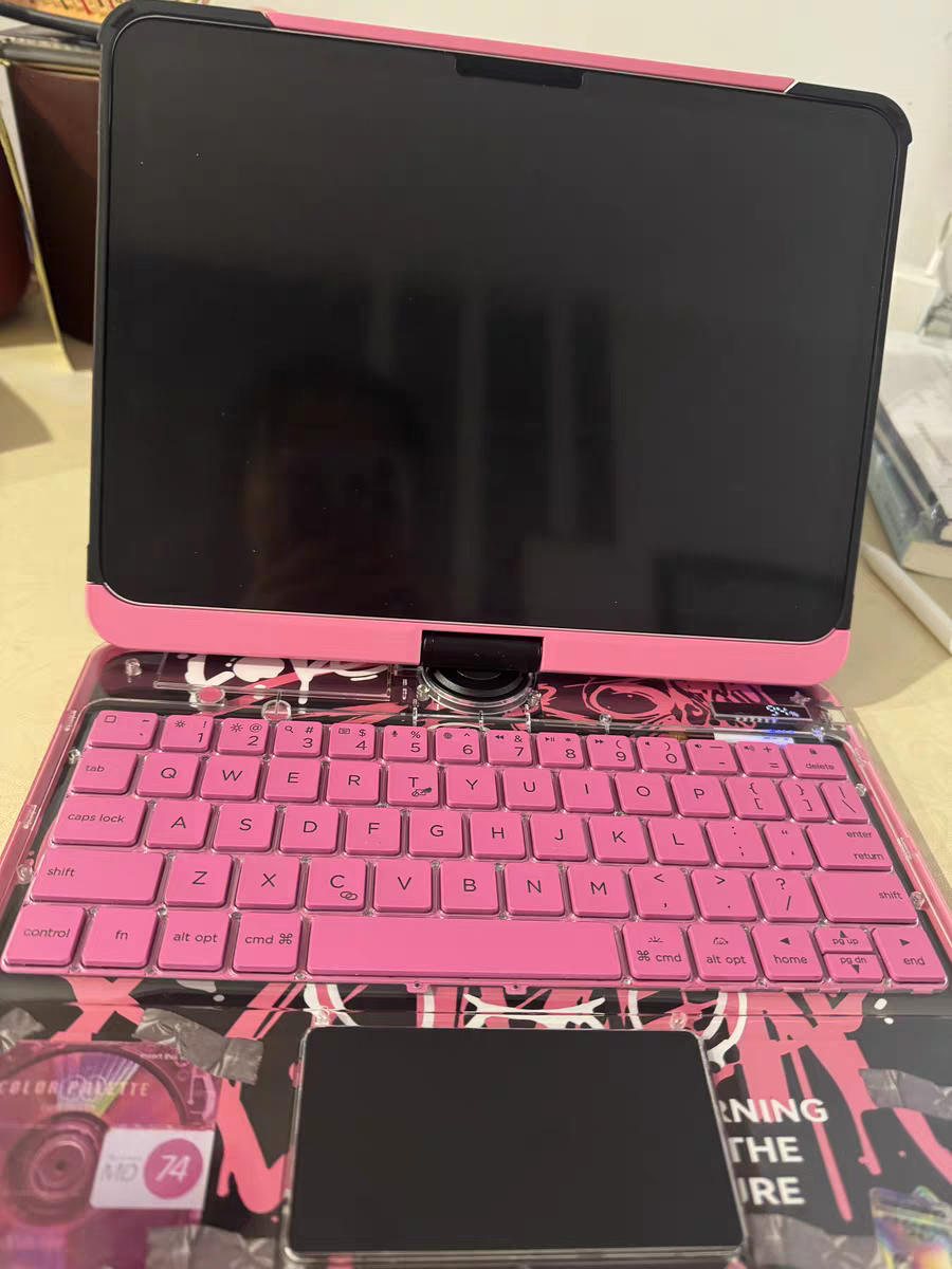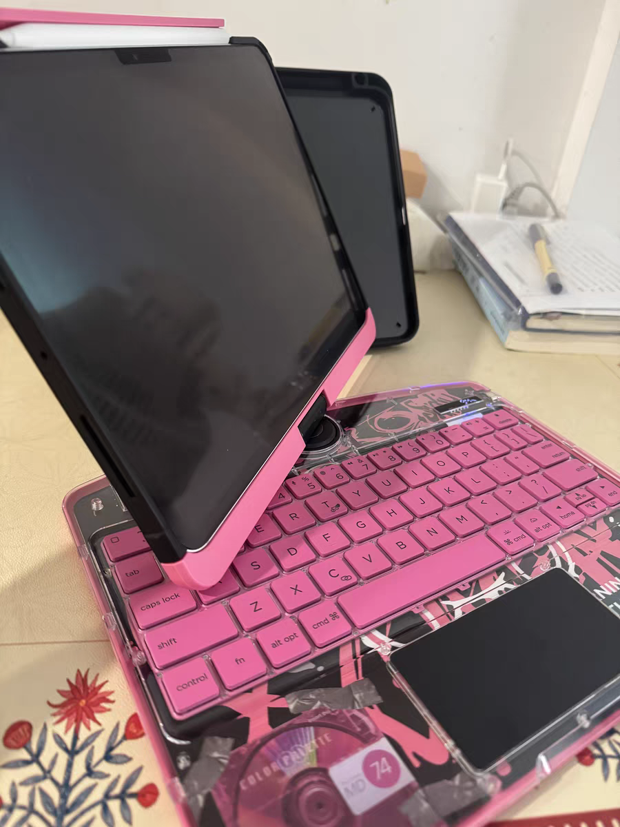 The pink lighting option is GORGEOUS. Like, I never knew an iPad case could give me aesthetic joy lol