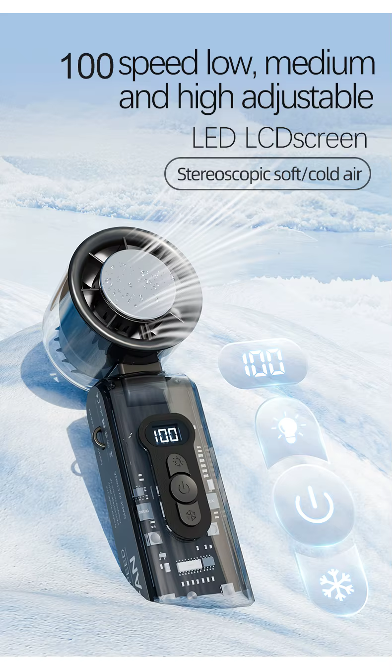 SIGOR Cyberpunk Transparent Fan – 100-Speed Mini USB Fan