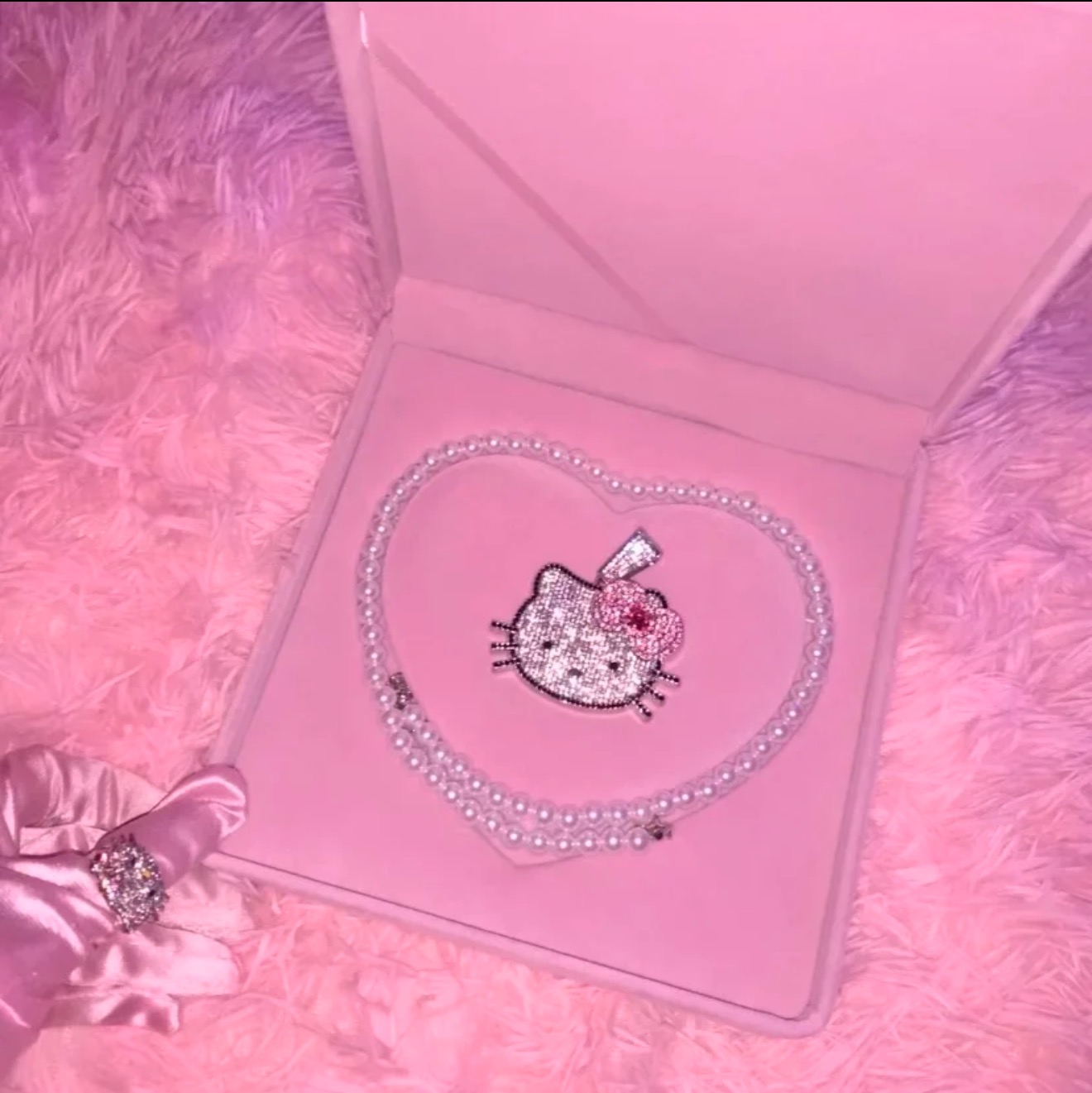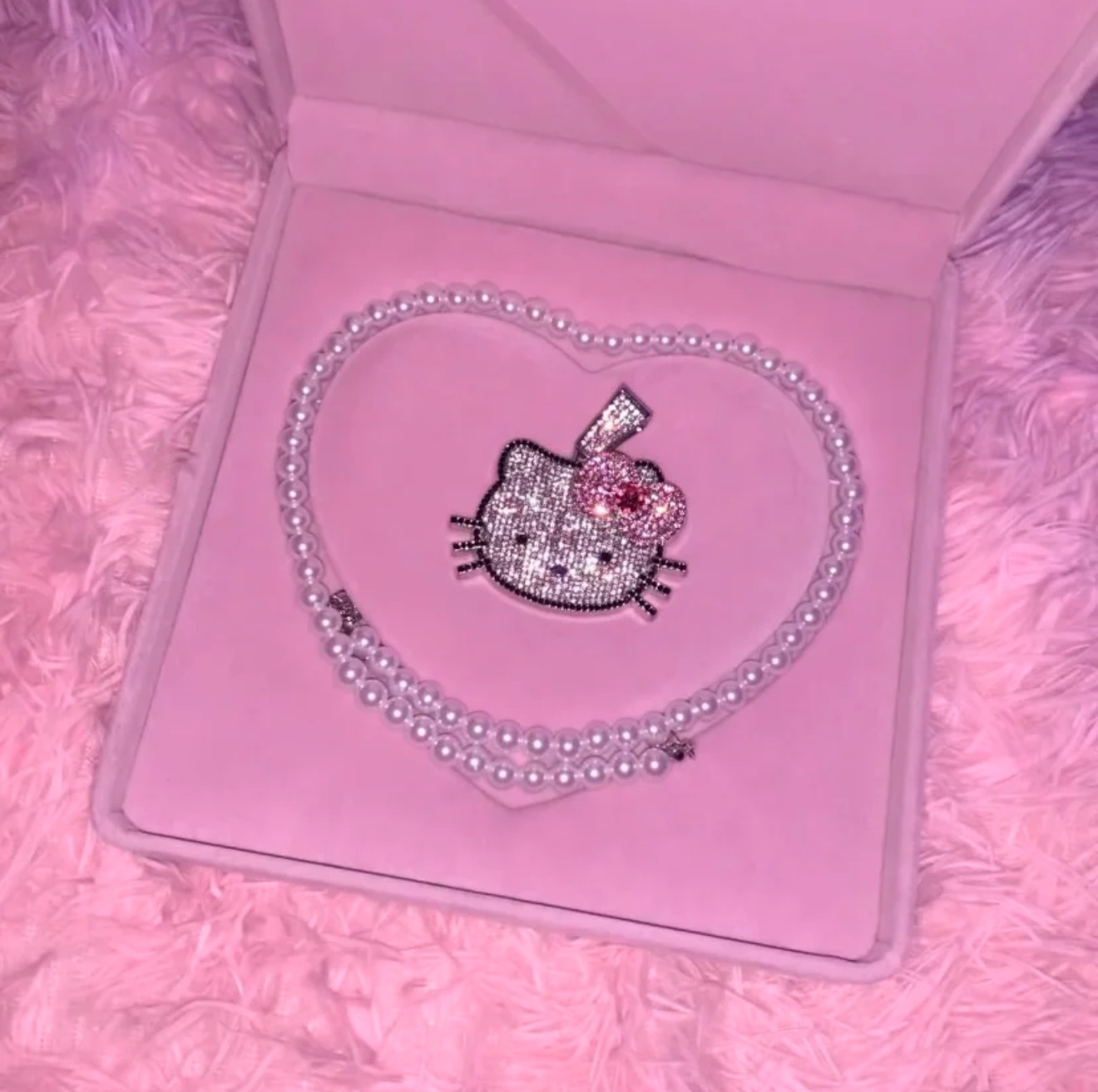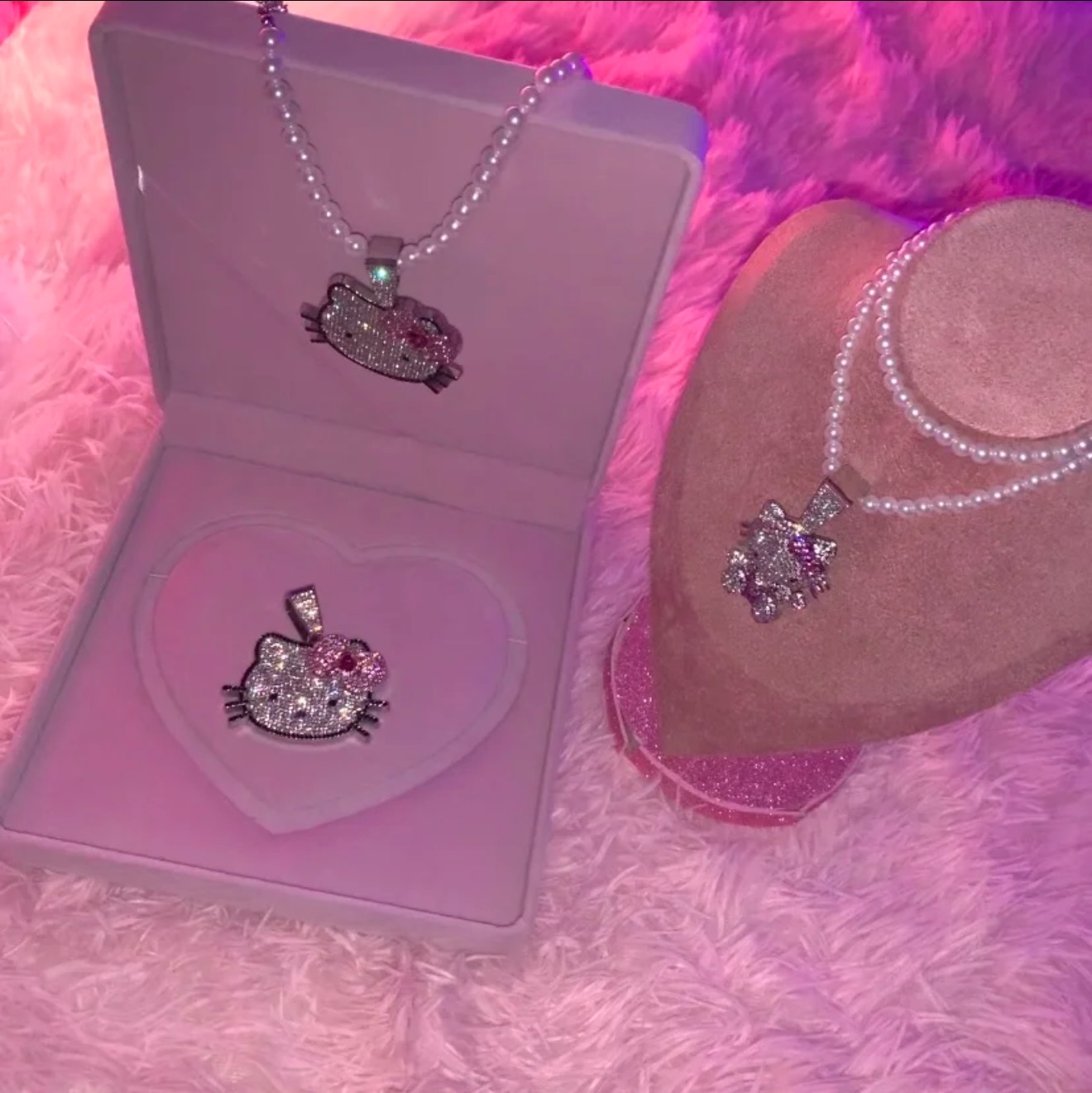 SIGOR Hello Kitty Sparkly Rhinestone Pearl Necklace