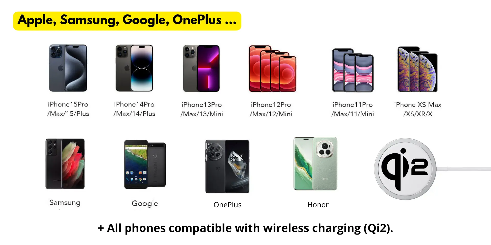 iPhone 12–15 series & Qi-enabled Android phones