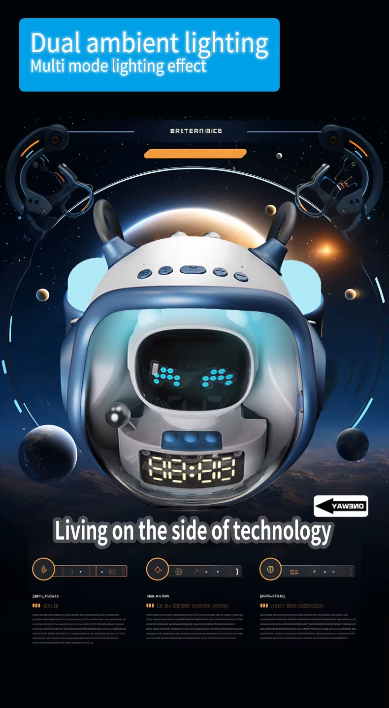 Home TF Card FM Radio Alarm Clock Protable  Speakers Atmosphere Light
