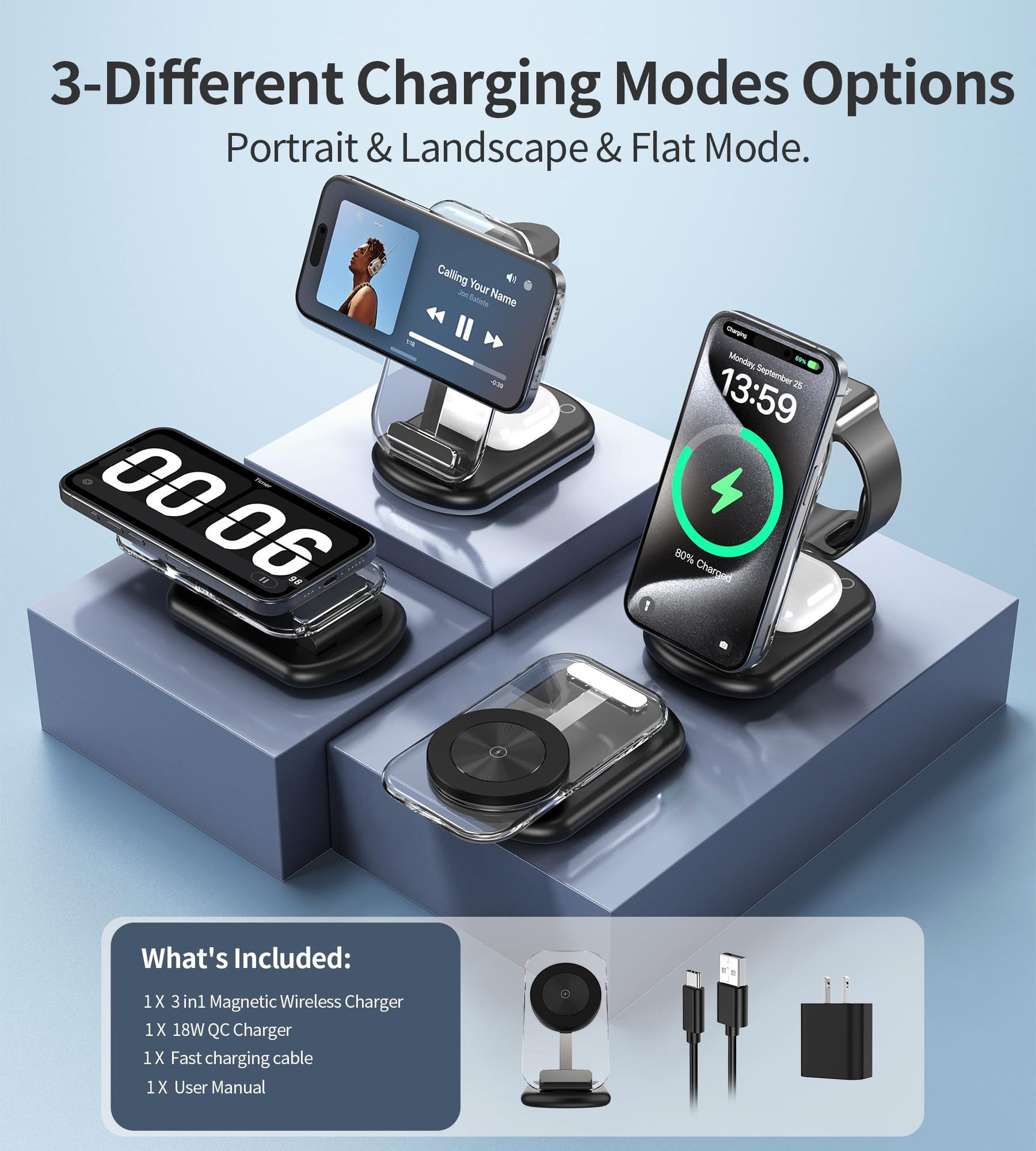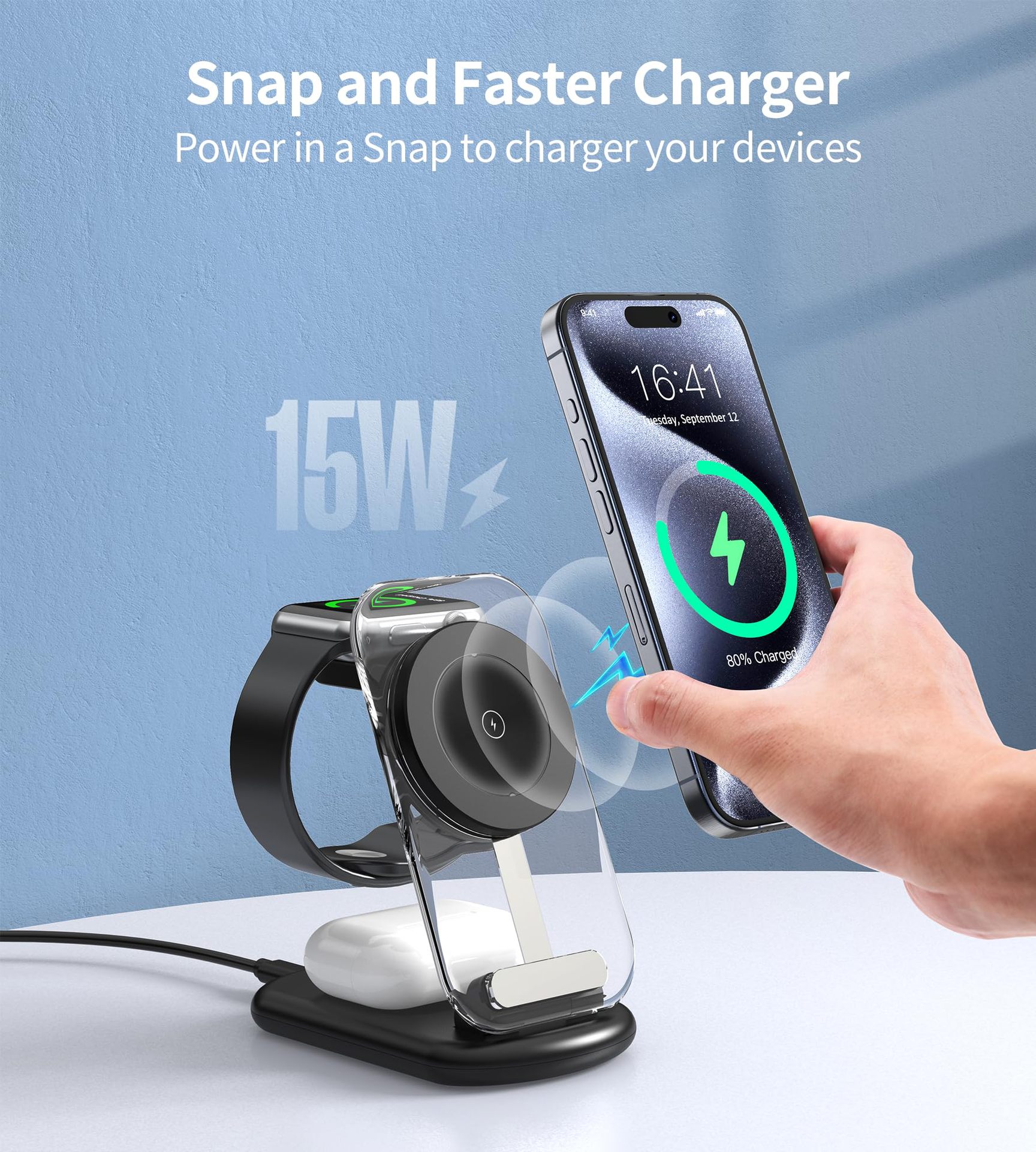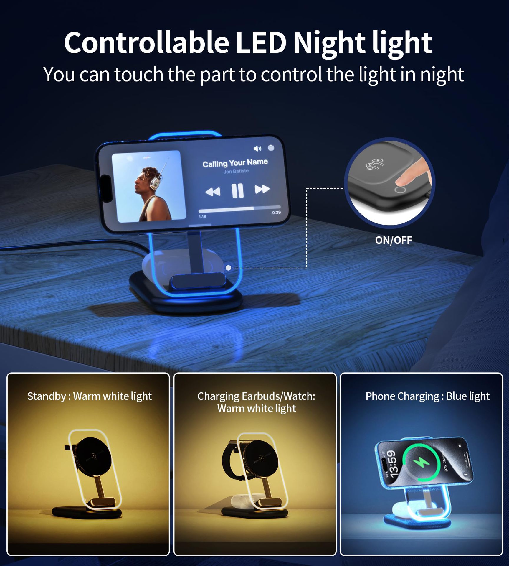 Wireless charging function, 3 in 1 wireless charging station, magnetic suction
