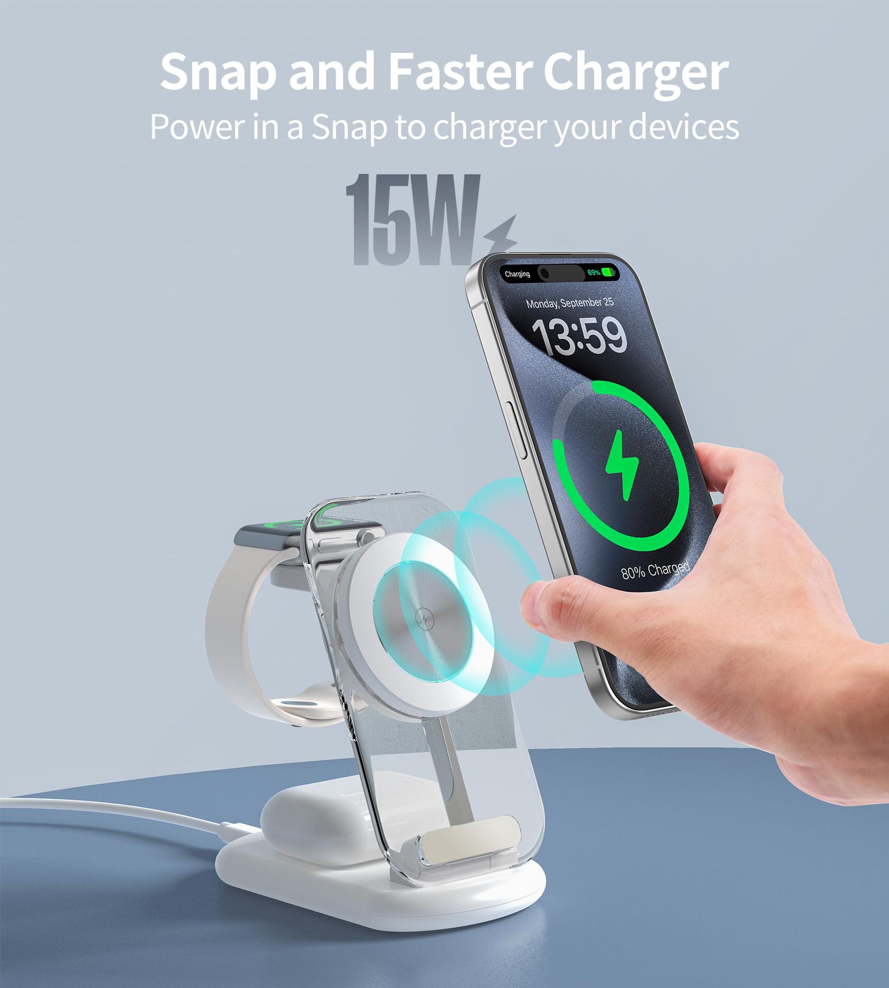 • SIGOR New transparent foldable magnetic 3 in 1 wireless charger