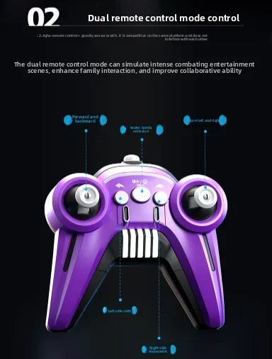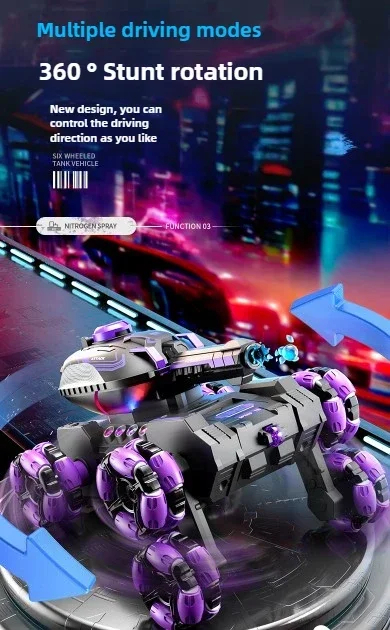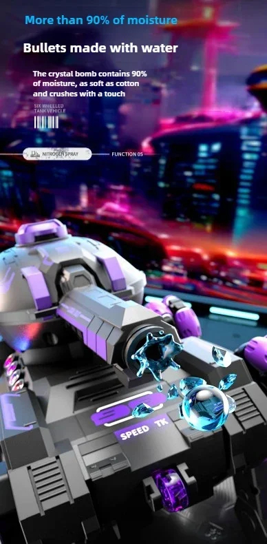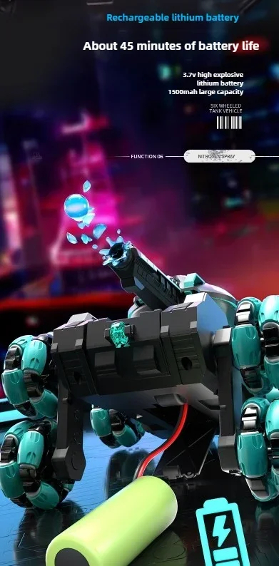 DetailBrand NameSIGORMaterialABSControl Mode2.4Ghz controller + 2.4Ghz gesture sensing watchPower SupplyLithium batteryWorking Time45 minsColor Box PackagingYesRotation Angle360°FunctionMulti-directional driving, light water bombs are fired continuously, and it is applicable to multiple terrainsAccessories ListScrewdriver, USB charging cable, lithium battery*2, battery*2, water bomb*20kSize16.5*22*11CM
