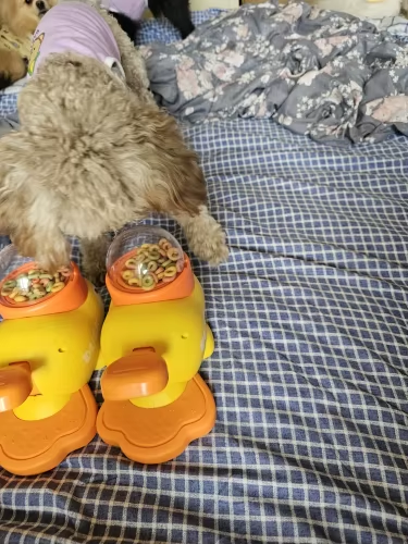 Customer Reviews K***L K***LThe quality is very good and it is also very light. We have bought many pet toys, but I think this one is the best. Whether it is fun, shape, quality or price, everything is far beyond expectations.    M***K M***KWe are still training how to use it, but my dog already loves it.    D***J D***JIt's easy to get started! The shape is very cute and the price is very reasonable!    K***M K***Mpress, press, press... Delicious snacks are coming to my mouth!!🤤    D***T D***TThis is now my cat’s favorite toy. She spent 2 days learning and getting used to its use, and now she is very skilled in using it.    S***M S***MMy ragdoll cat likes it very much, although he hasn't learned how to press the button by himself. Maybe he thinks it's magic or it's my responsibility🙄😜 Anyway, we are very satisfied with this purchase!    G***L G***LChelsea is an 11 year old baby. She often has a poor appetite and is gradually losing energy. But she love this toy very much, and it even improves her appetite. She always stays around the "duckling". As long as she is happy, everything is worth it.😊        R***H R***HI had one for each of my two dogs but this naughty one took both. Definitely worth buying, cheap but good quality    J**V J**VThis is definitely the most worthwhile pet toy I have ever bought! My dog was having a blast and didn't want to pay any attention to me except for asking me to add treats🤣