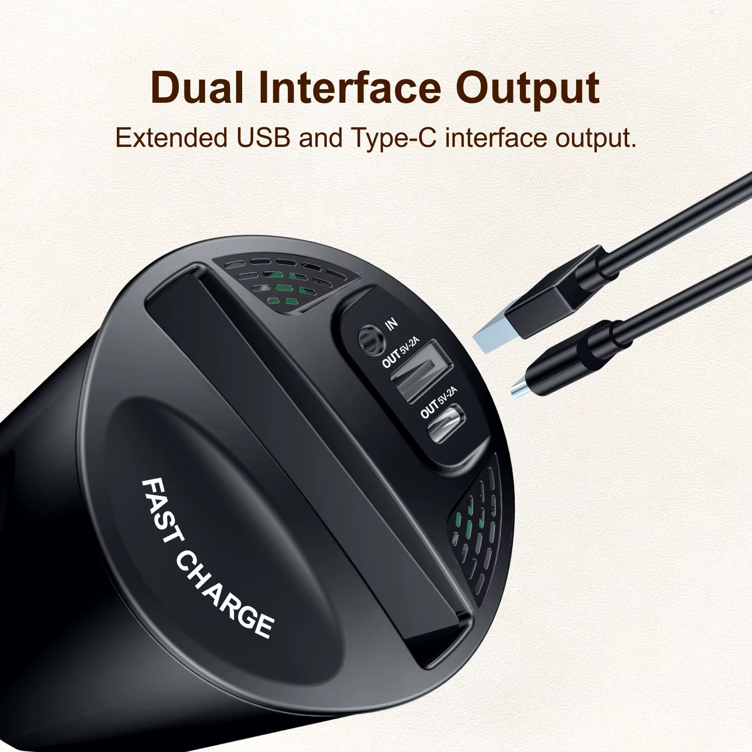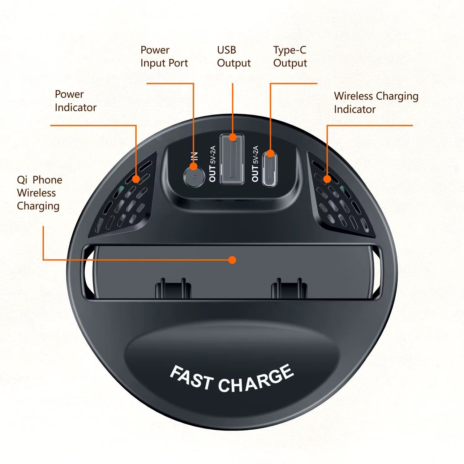 DetailBrand nameSIGORmaterialPC Fireproof Material, ABSfunctionQi, USB Output + Type-C Outputport2 X USBoutput powerWireless Power: 15W/10W/7.5W/5WoutputUSB Output: 5V 2A, Type-C Output: 5V 2AColorBlackTwo OutputUSB-A and USB-C