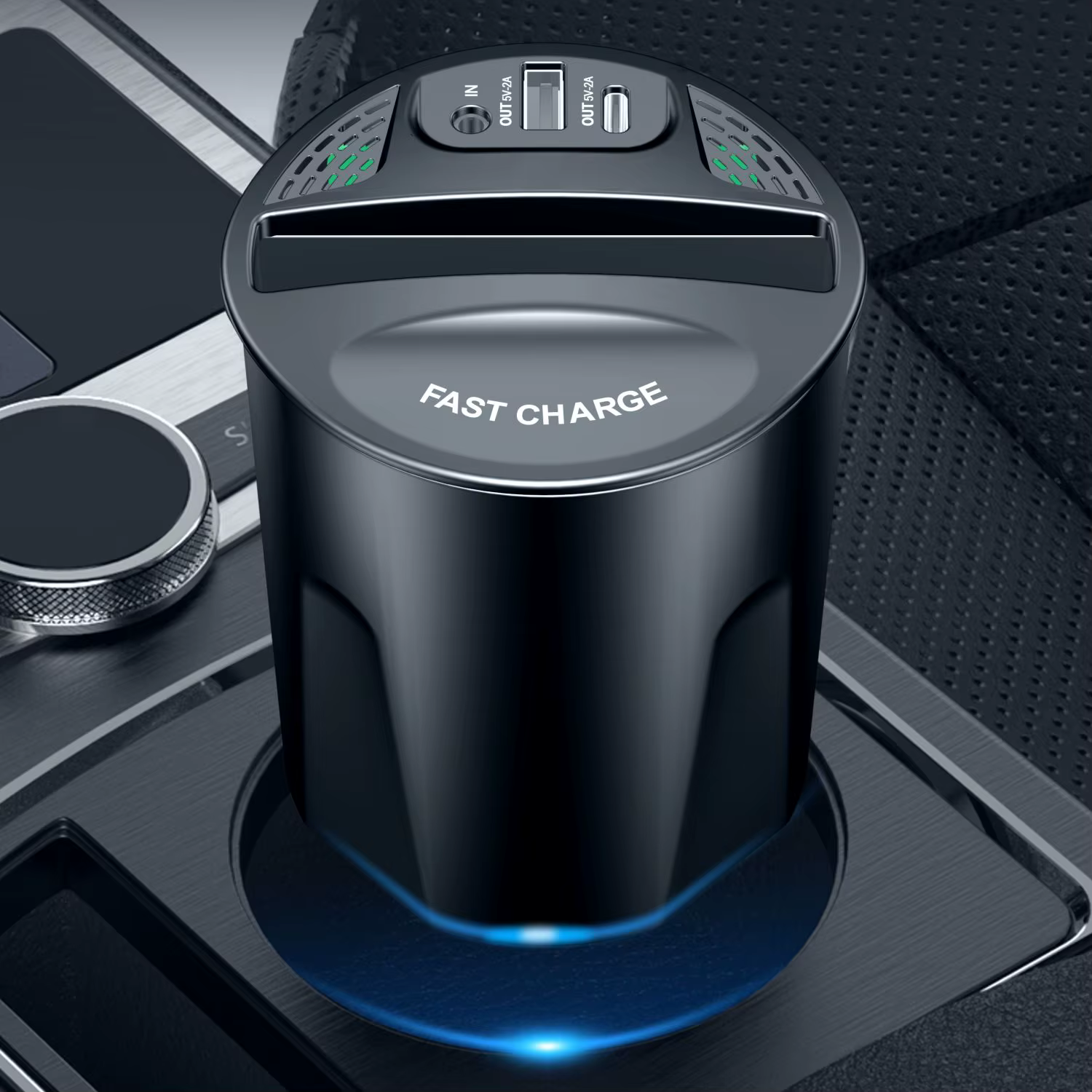 SIGOR 15W Car Wireless Charger Cup Holder with Two USB and Cooling Fan