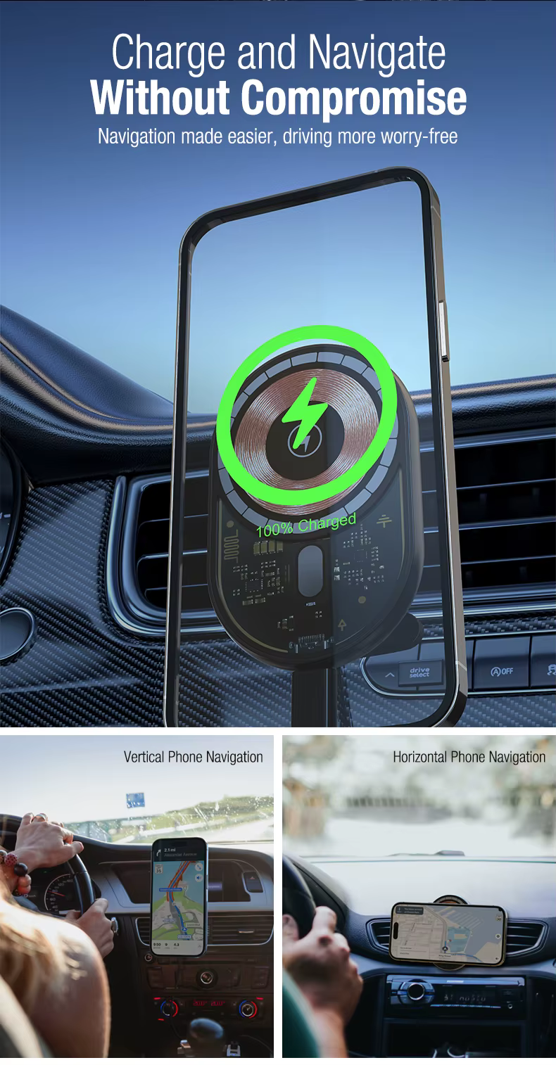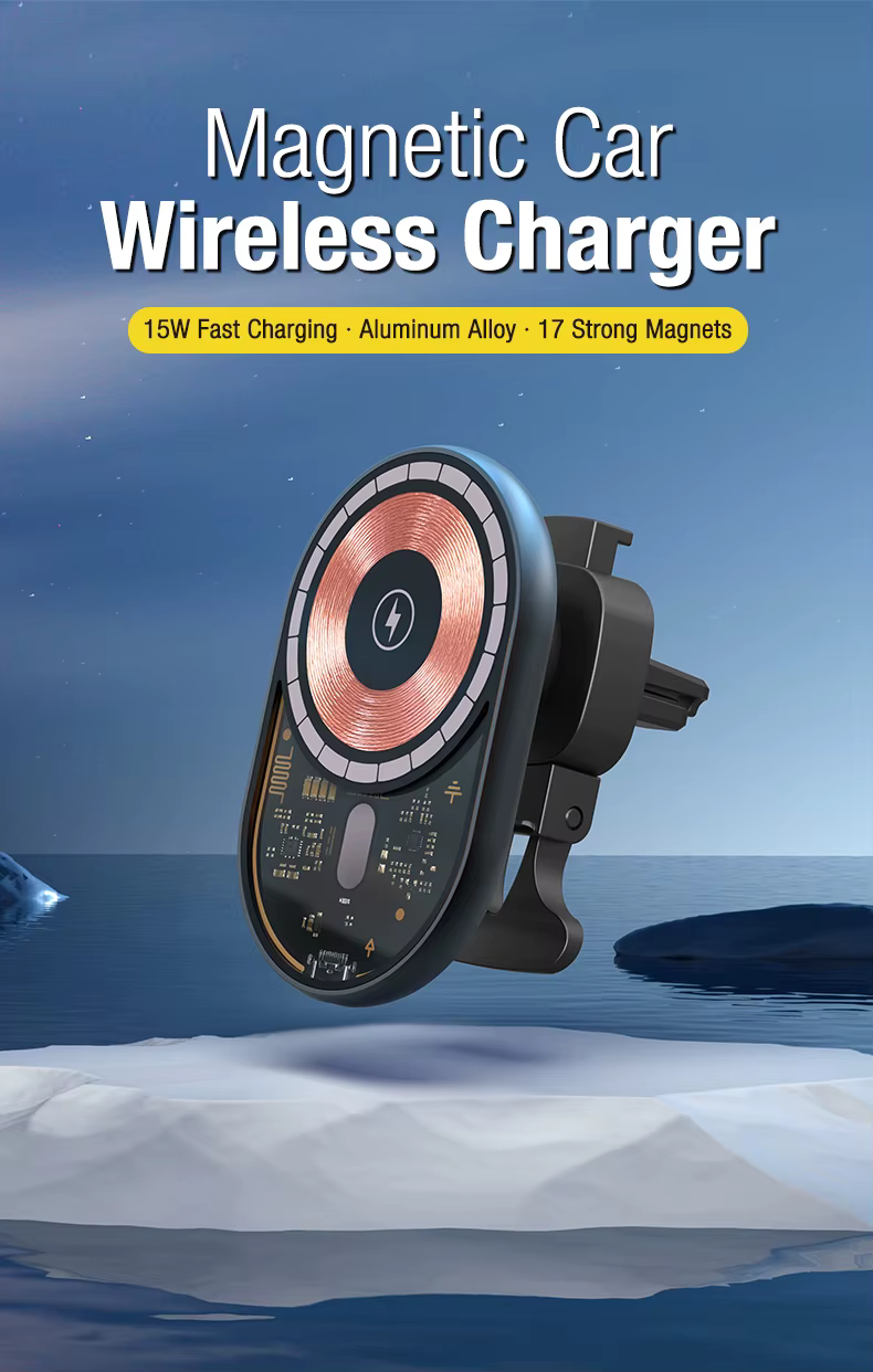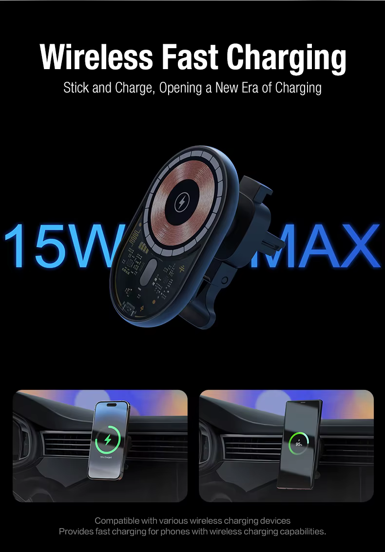 SIGOR 15W Transparent Wireless Car Charger Dashboard Mounting Type Magnet