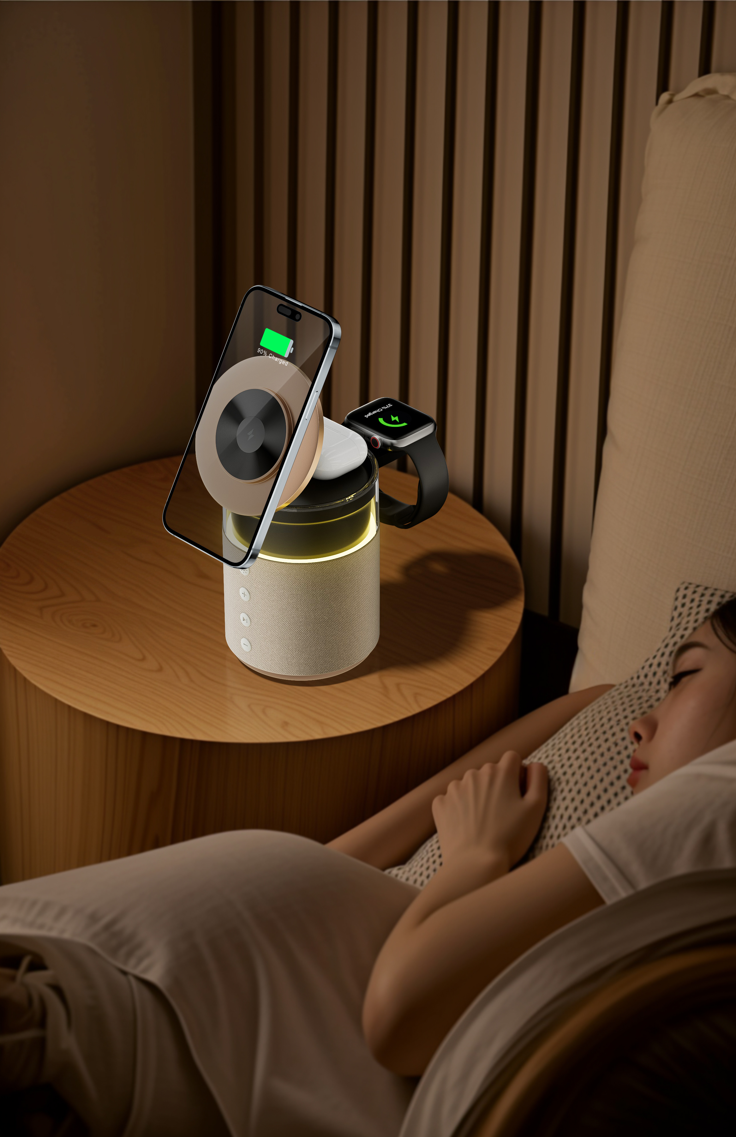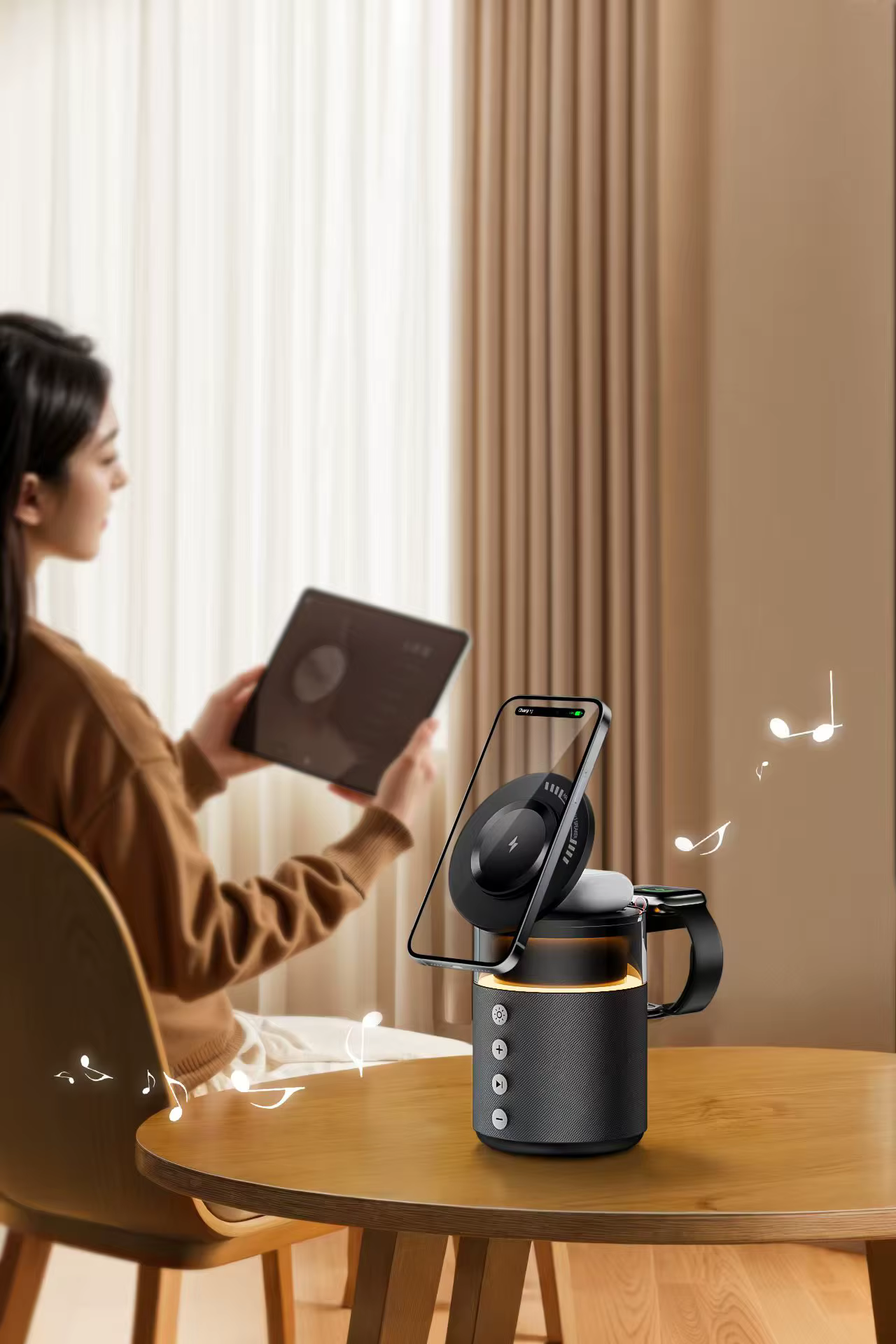 DetailBrand NameSIGORfeatureWireless Charger for Mobile PhoneSpeaker versionV5.4+BR+EDR+BLESpeaker input5V/1ABuilt-in battery1800mhInput voltage5V/3A 9V/3A 12V2AOutput power5W.7.5W.10W.15WProduct interfaceTYPE-CCable length1m3AColornude pink, gray, black