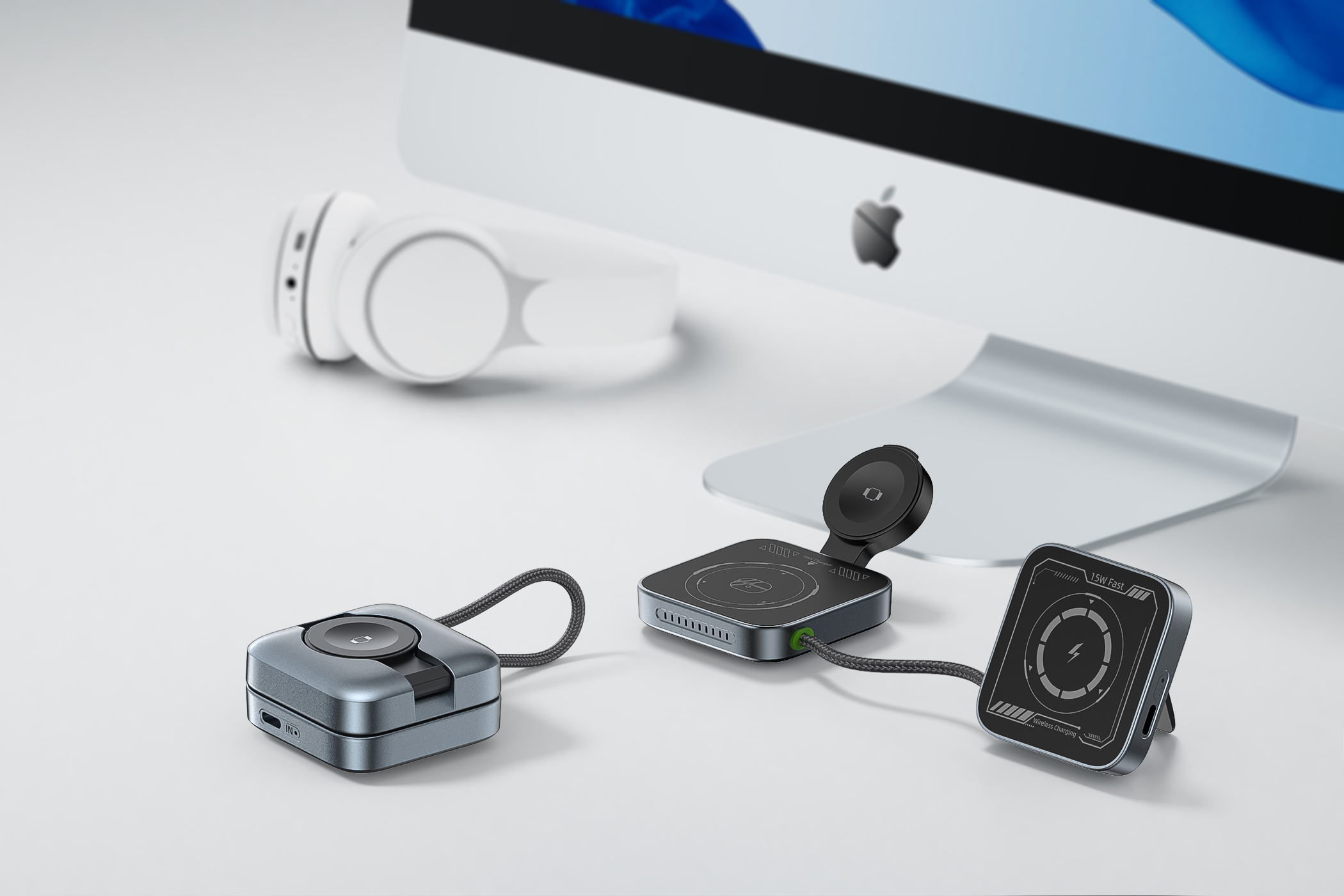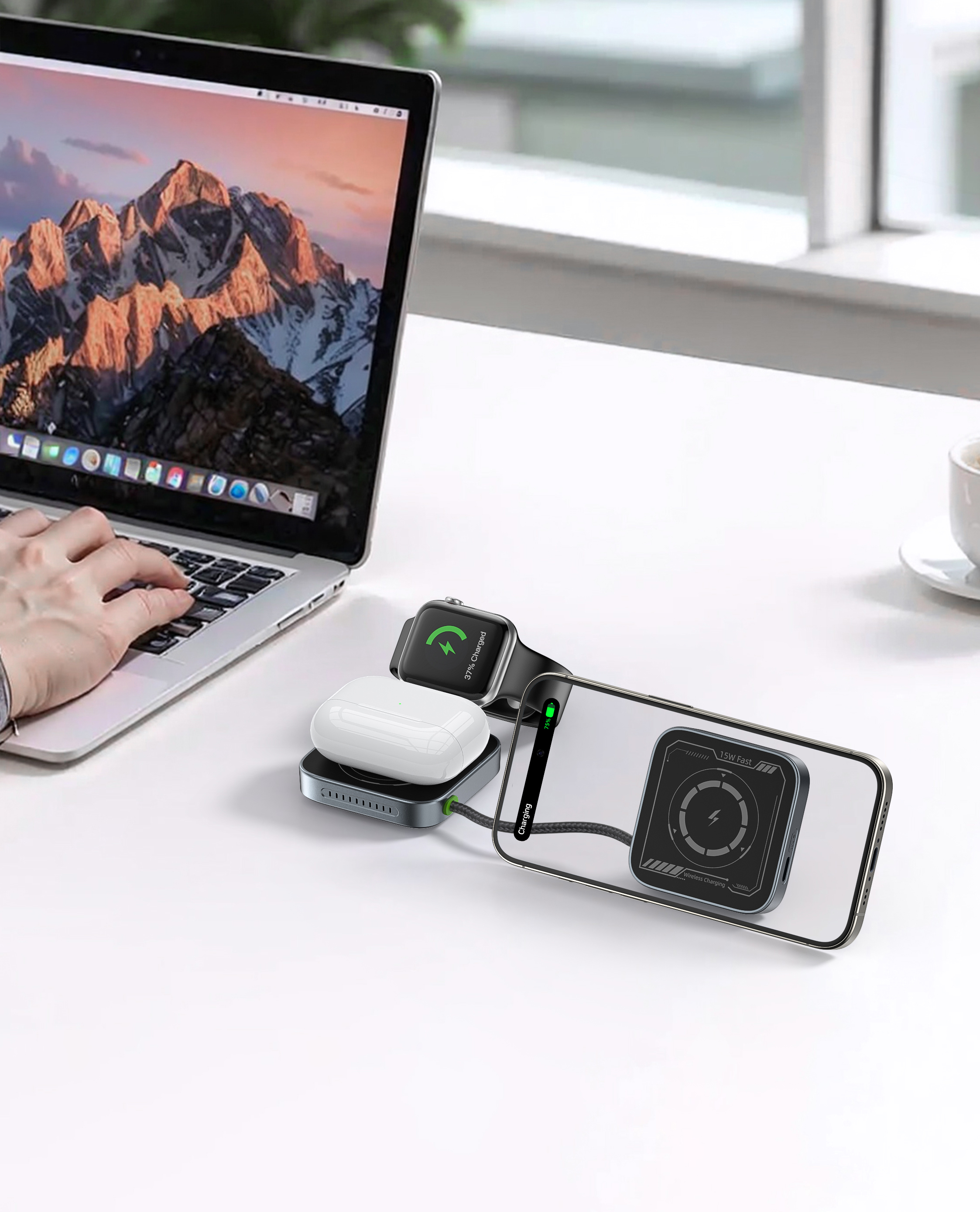 Folding magnetic three-in-one wireless charger, supports mobile phones, earphones and watches
