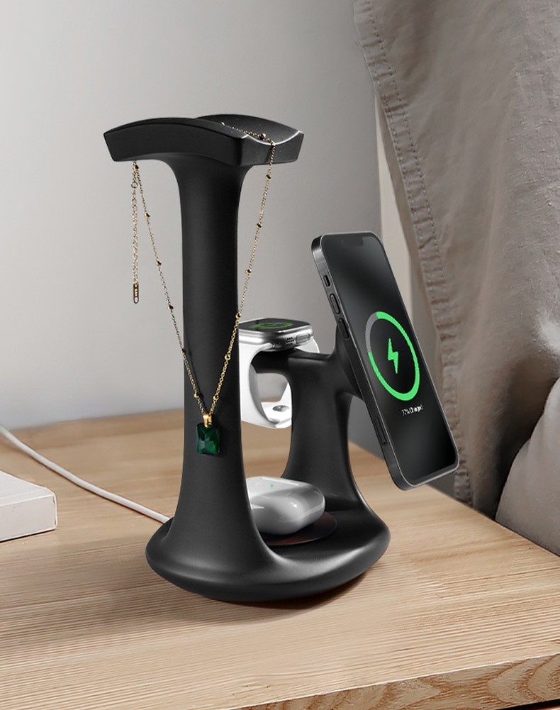 Magnetic hold + Wireless charging + Decorative desktop design+Accessory Hanger