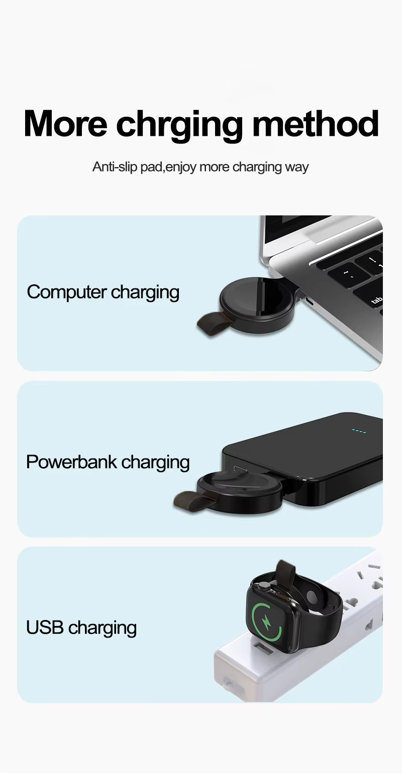 DetailBrand NameSIGORProduct nameMagnetic Wireless Smartwatch ChargerSupported DevicesApple Watch 8/7/6/5/4/3/2/1, Ultra, SEInput5V/1AOutput5V/0.5ABattery life40HmaterialPC Fireproof MaterialfunctionPDUSB portTYPE-C PortCertificatesKC, PSE, CE, FCC, RoHS