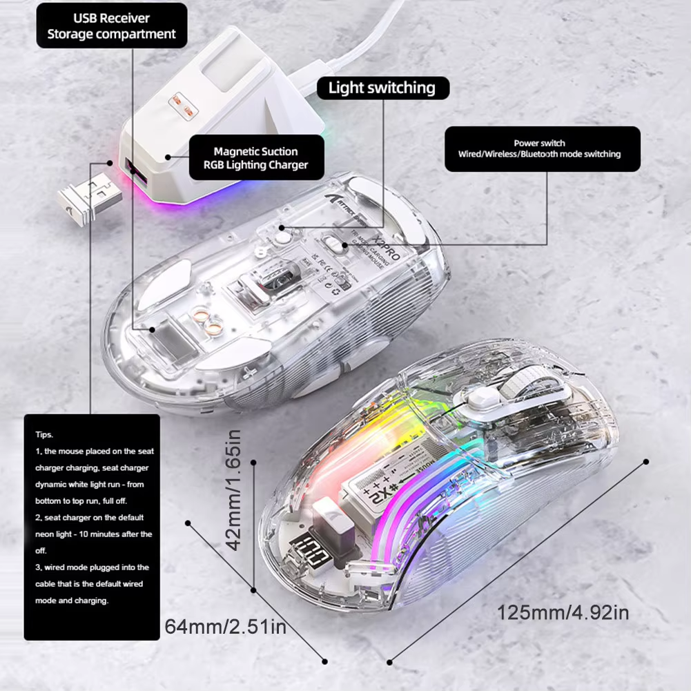 SIGOR Wireless Transparent Gaming Mouse Bluetooth-Compatible 3 Modes Mice