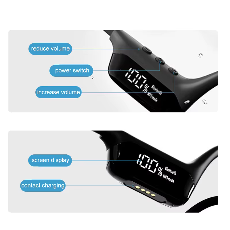 SIGOR New Display Bone Conduction Headphone Waterproof 5.3 Wireless Sports Headset