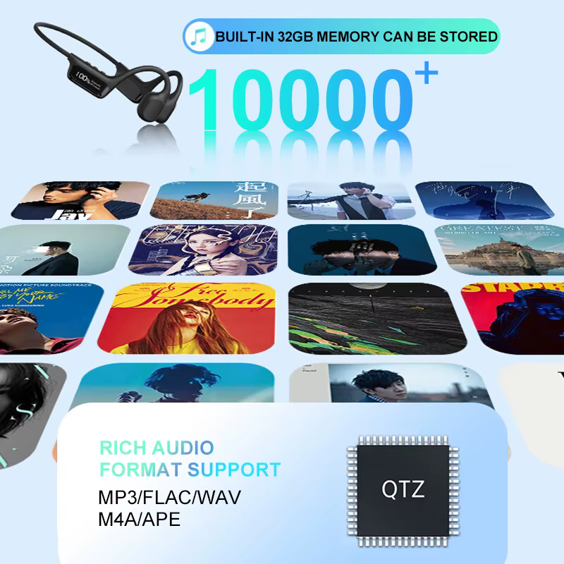 DetailBrand NameSIGORProduct namebone conduction headphoneBluetooth versionV5.4battery capacity230mAhFrequency response20Hz-20KHzCharging parameters5V/0.5-2AMAXMemory32Gpackage size135*105*48mmWeight37.4gUsage Time8Hours