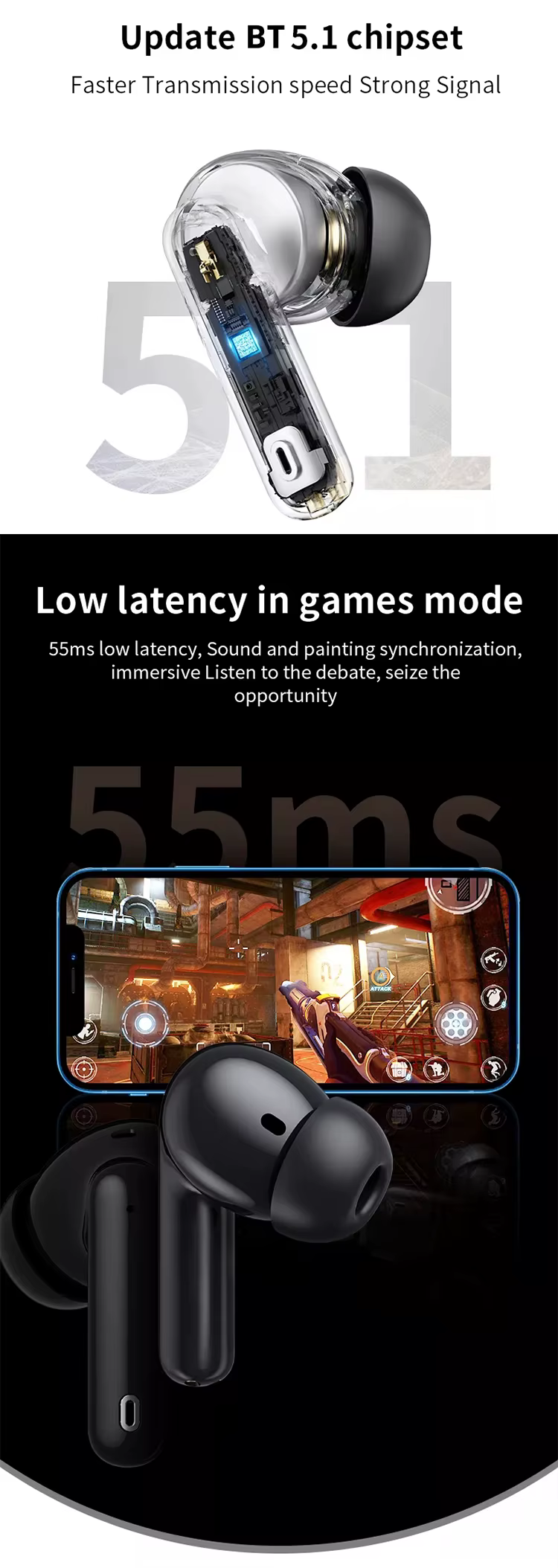 ENC Tws Hifi Headphone Waterproof Game Sport Earphone