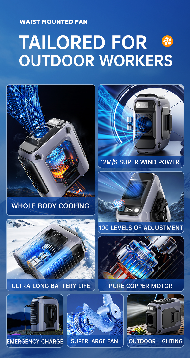 SIGOR 2025 portable outdoor construction site waist-mounted high-speed fan