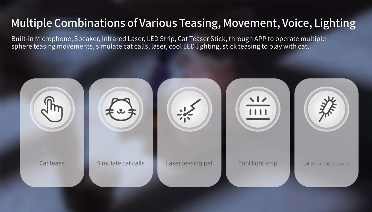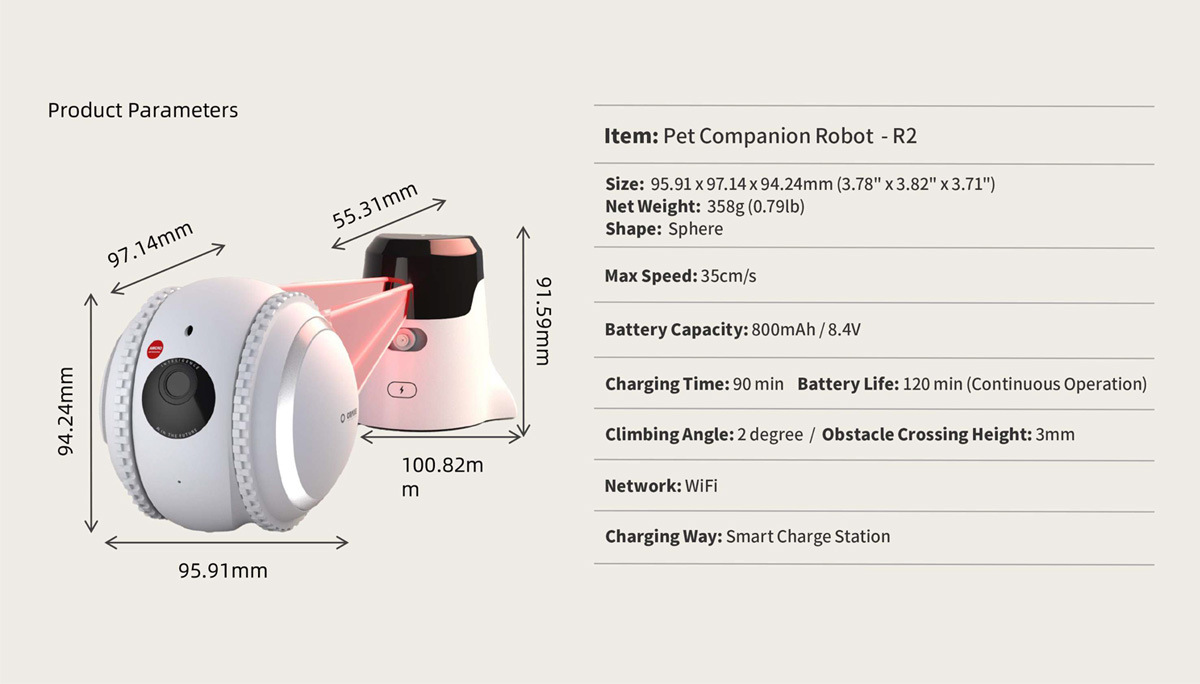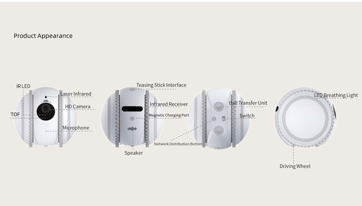DetailBrand NameSIGORFeatureEco-FriendlyApplicable PetCatsTypeBALL, laser toyMaterialSilicone, RubberControl methodSmart APPSpeed0.45 m/sSpeed level3 levelsFeaturesRemote control, remote monitor, remote video recordChargingAuto recharge
