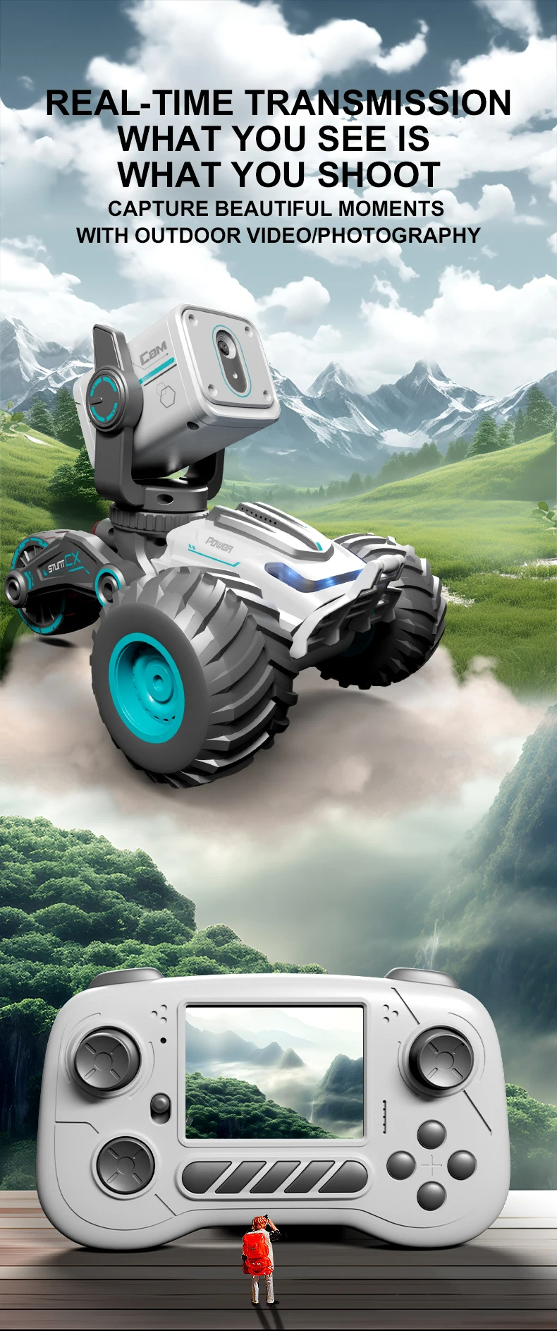 SIGOR Multi-Function Wireless Photography Remote Control Car With Display