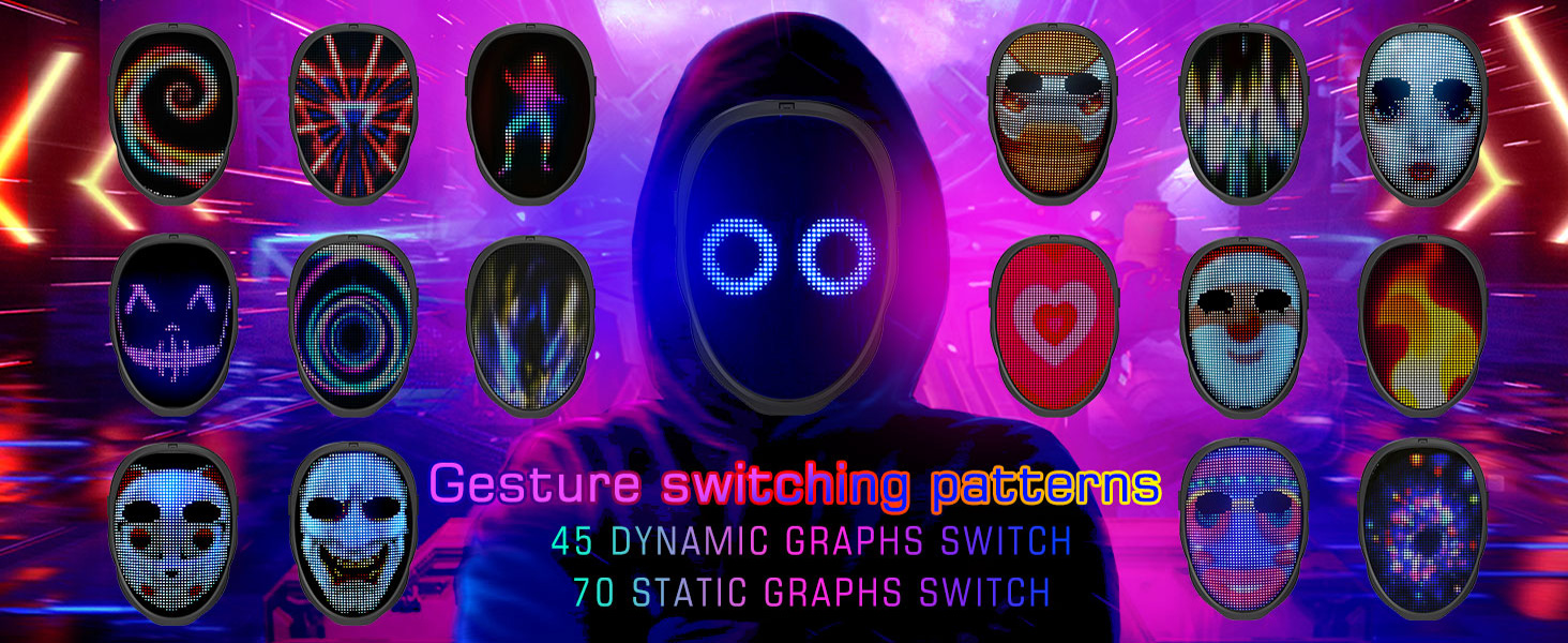 45 Dynamic Images + 70 Pictures + Custom Upload + Text Input. Programmable Bluetooth App Control Gesture Changing Transforming Face Mask