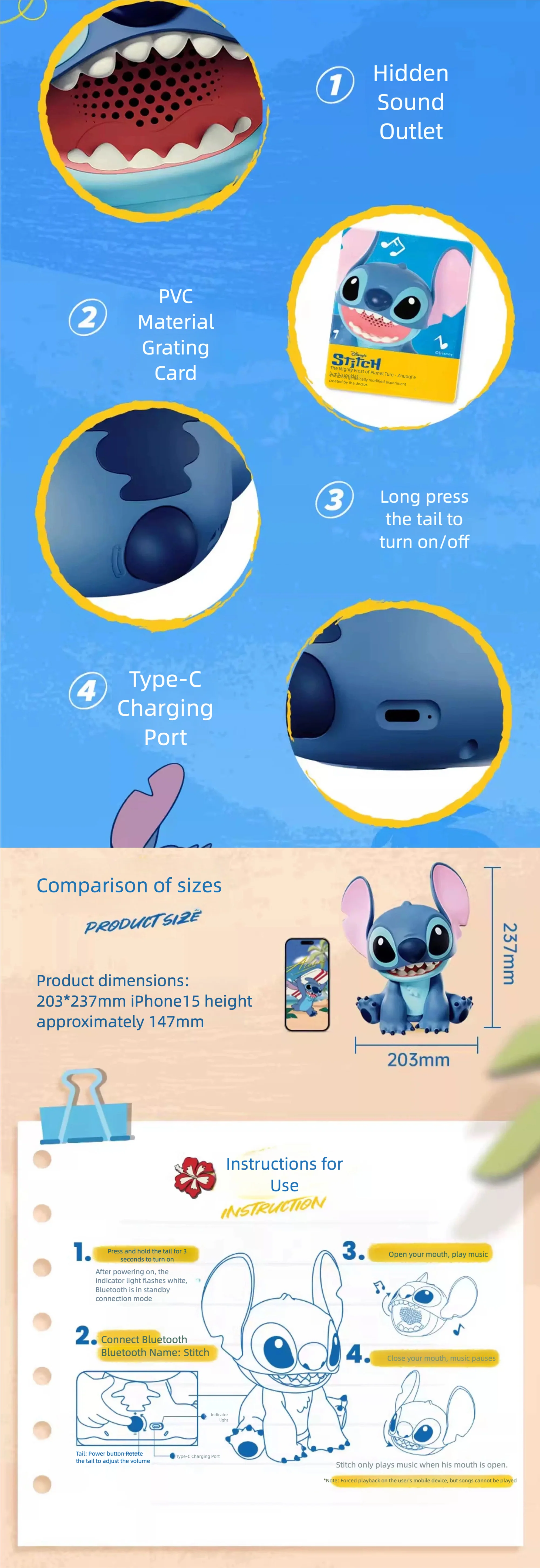 As a Stitch lover, when I saw this, I couldn't resist, I just knew I had to order it! Everything was beyond expectation, the sound quality is great too!
