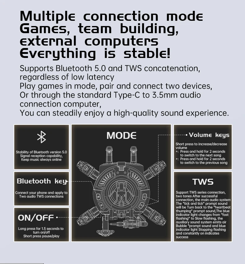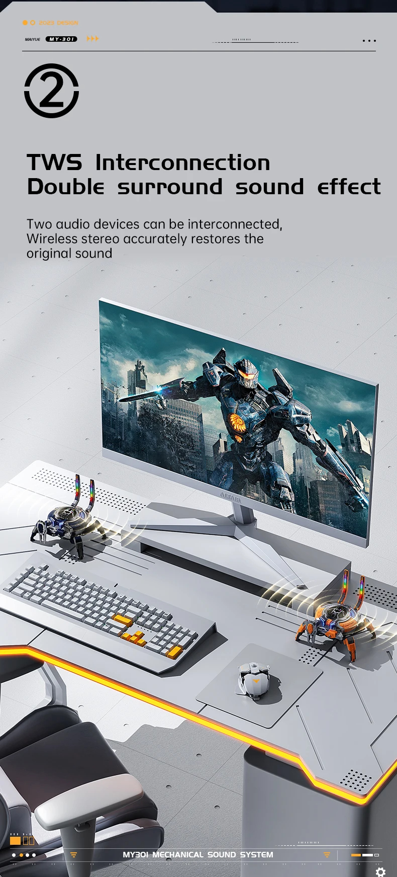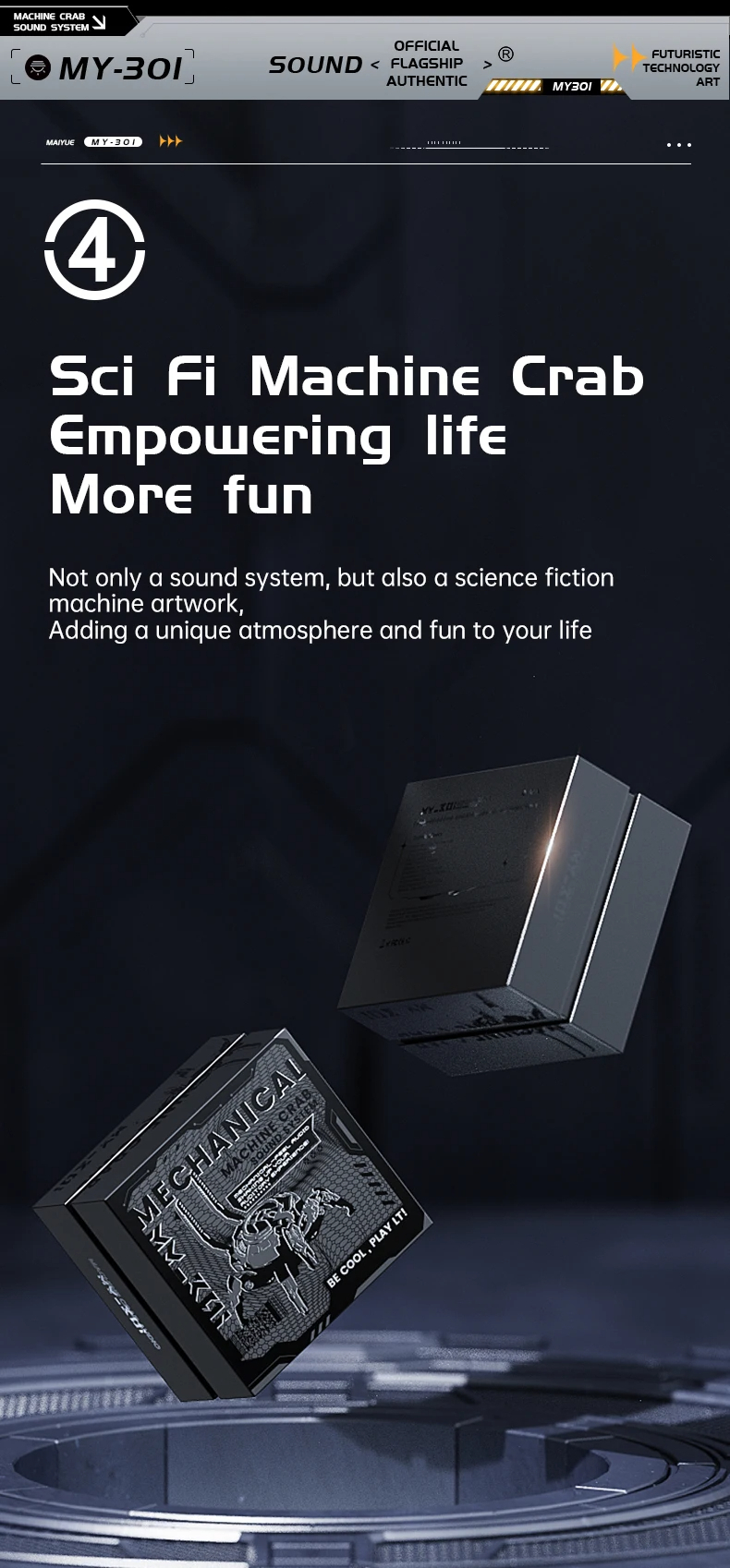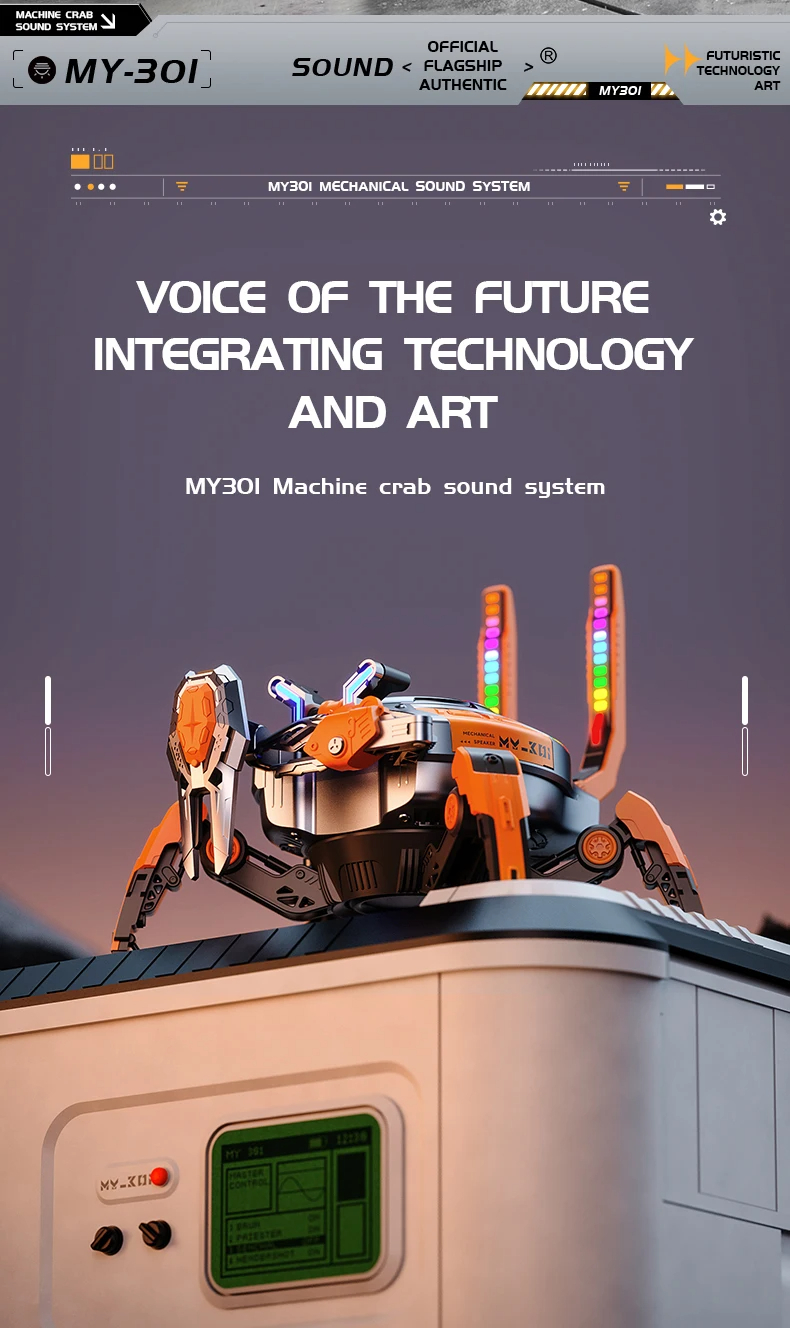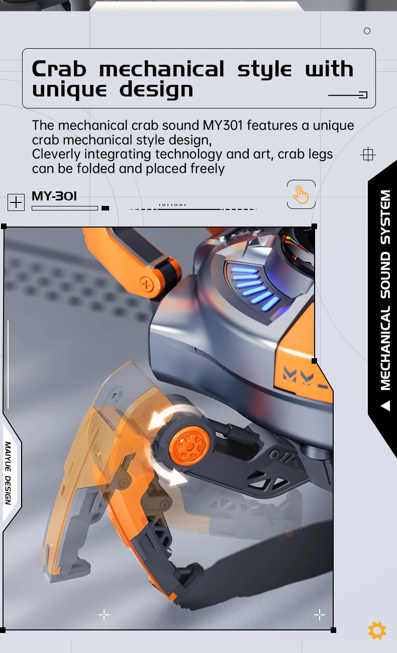 DetailBrand NameSIGORcharacteristiccolorful LED lightProduct NameWireless Mechanical Crab RGB Rhythm Light Audio SpeakerDesign styleModernMaterialABSappComputer/Laptop/Mobile Phone/MP3/MP4MaterialLED flashSpecial FeaturesMechanical crab shapecommunicationWirless SpeakerRated Power8W/10W