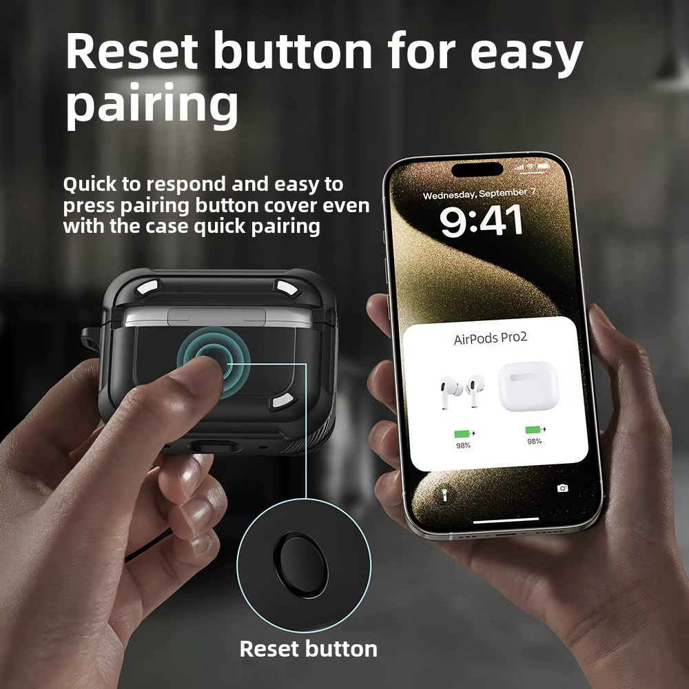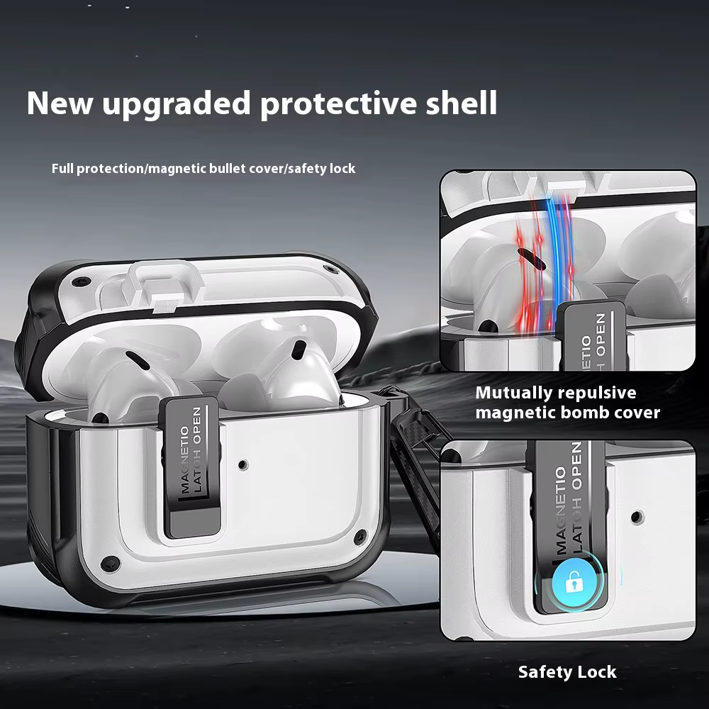 Durable shockproof earbuds case with built-in magnetic ring – perfect fit for Apple AirPods Pro, secure, stylish, and MagSafe-ready.
