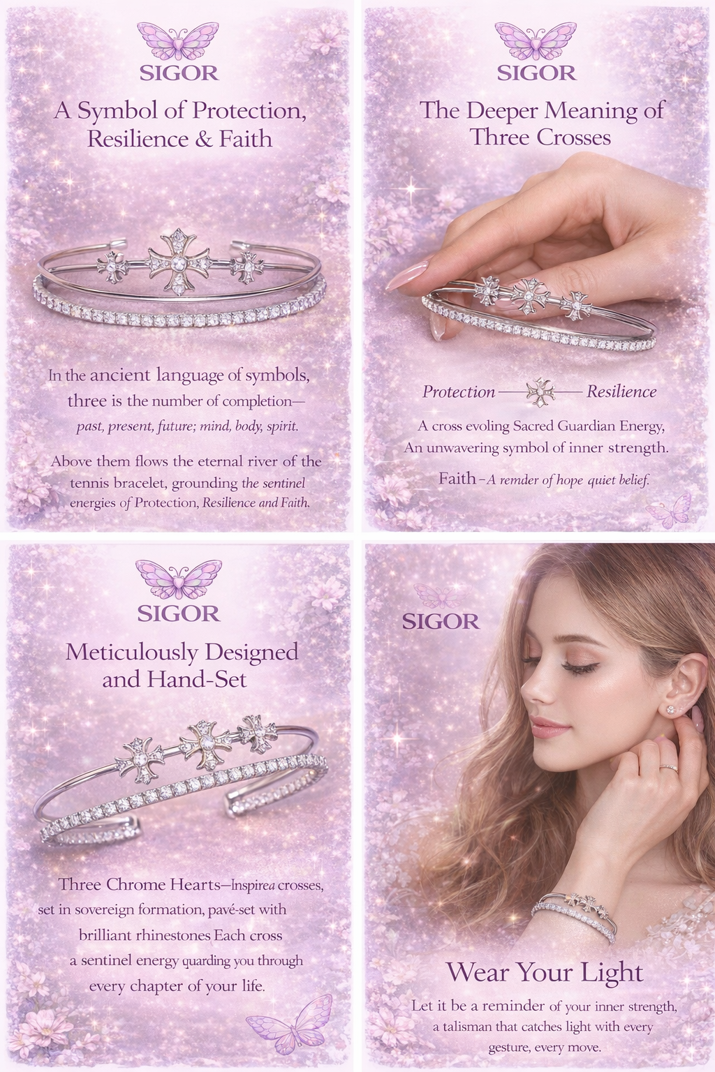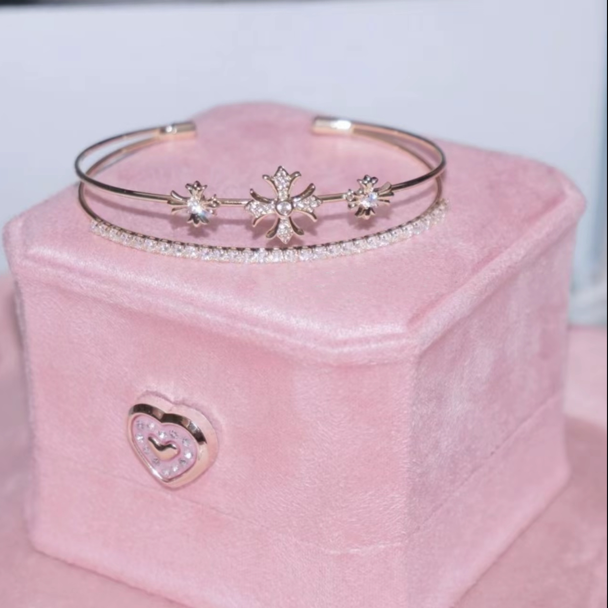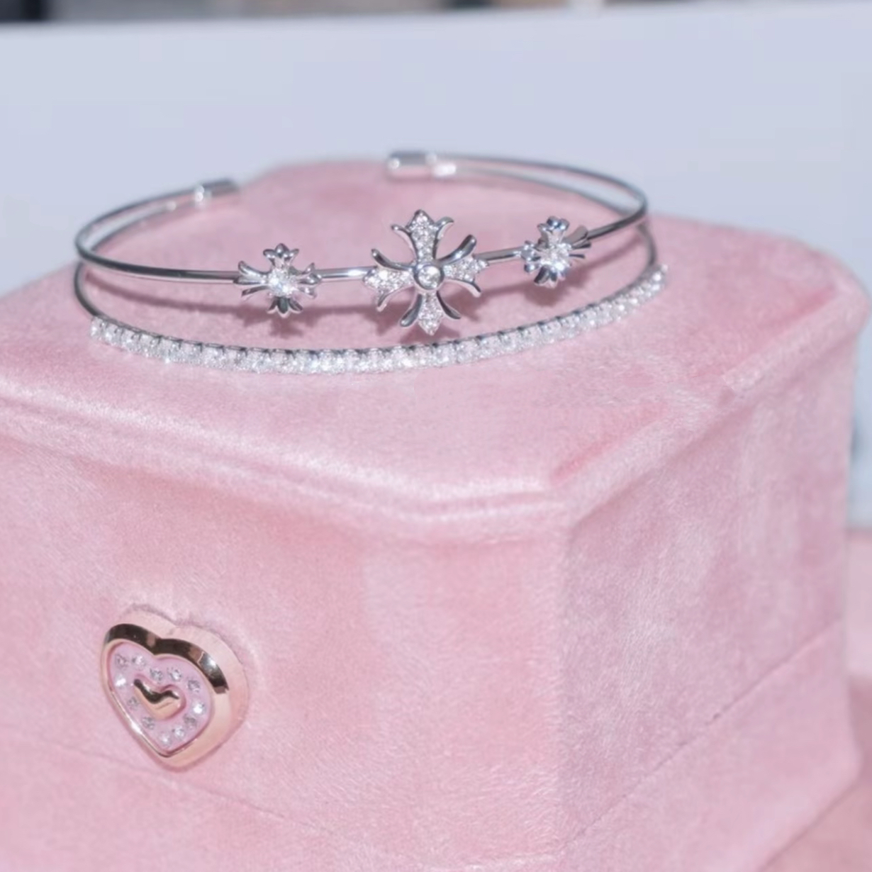 The Triple Sanctum Cross-Shaped Diamond Double-Layer Bracelet